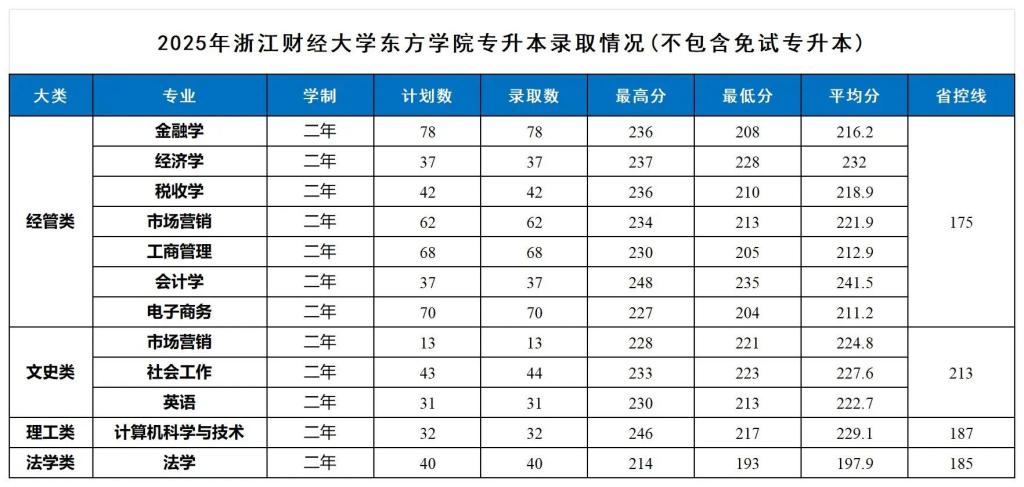 根据《浙江财经大学东方学院2025年退役大学生士兵免试专升本招生章程》,我院免试专升本计划招生76人,拟录取总人数57人。7月15日前拟录取考生所在的高职高专院校与省教育厅学生处共同审核确认拟录取考生高职高专毕业资格,不能如期毕业者取消录取资格。学院将按审核通过的名单办理录取手续,并寄发录取通知书。