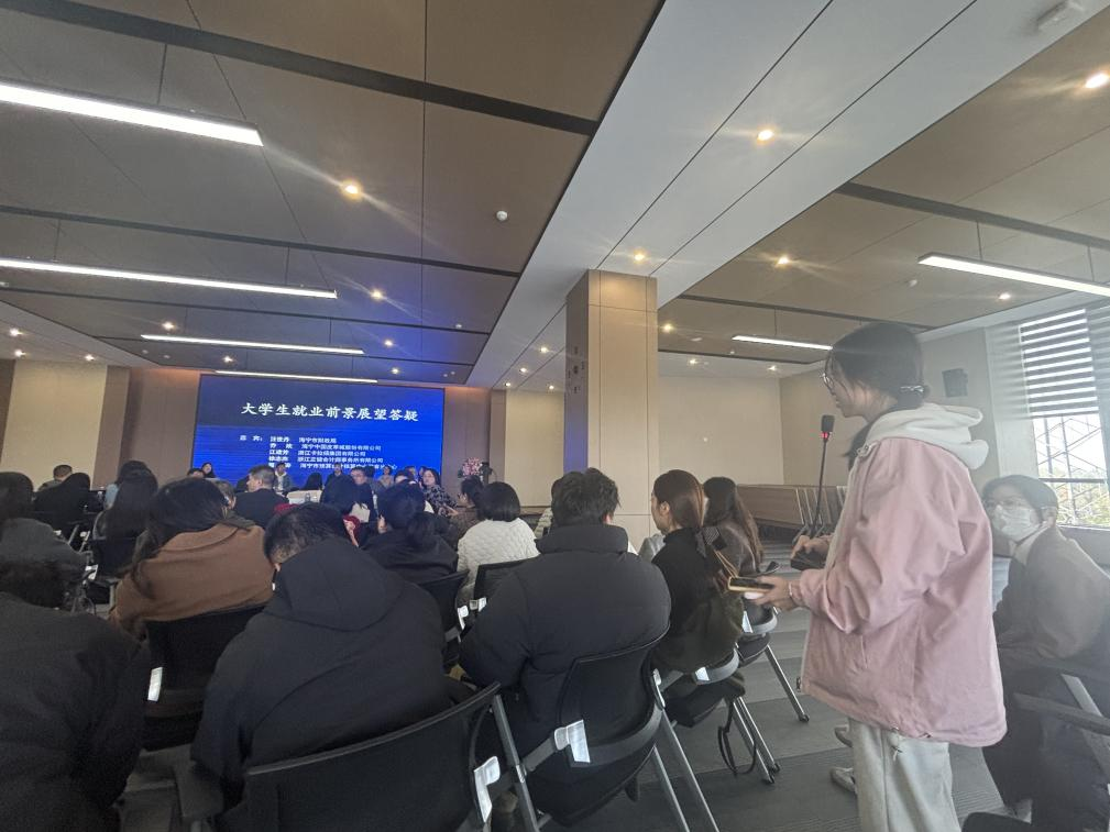 参观结束后,讲座分享活动亮点纷呈,不仅聚焦高校学子职业发展核心关切,更带来前沿行业分享与深度议题探讨。其中,宁波高新区投资集团管理有限公司财务副经理罗雨林带来《生成式AI在财会实务工作中的应用思路与技巧》专题分享,助力参会者精准把握技术变革趋势。沙龙对话环节,4家省、市、县代表企业财务专家围绕“业财融合与价值创造”核心议题,结合行业深耕经历,深入探讨财会工作融入业务、创造价值的路径方法。此外,活动特设“大学生就业前景展望答疑”环节,来自国企、民企、中介机构、事业单位及政府机关的5位嘉宾现场“传经送宝”,精准点拨就业方向,助力构建“企业赋能+技术升级+青年培养”三维赋能体系,为财会青年成长筑牢支撑。